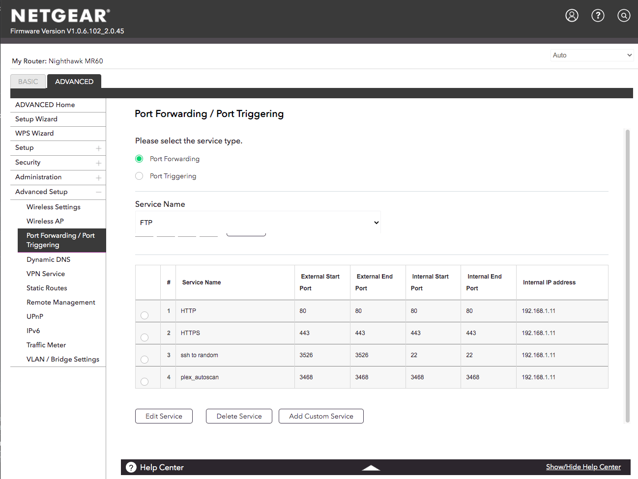 You can see here that I’ve set it such that outside requests to port 80, 443, 3526, and 3468 get forwarded on to the IP we just assigned to the saltbox server.